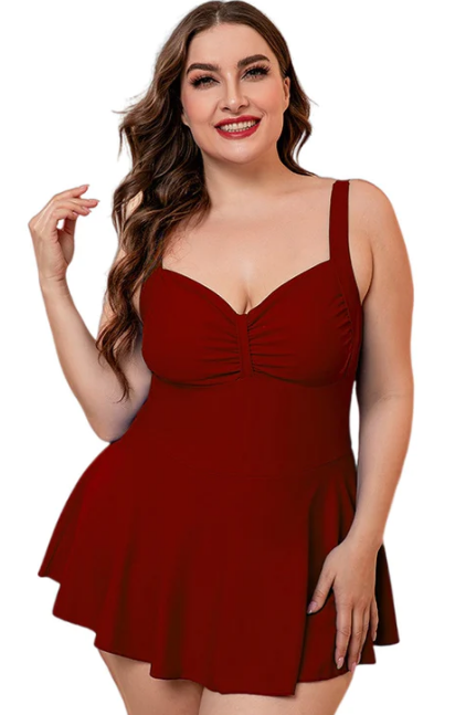 Plus Size Maroon Gathered Detail Swim Dress