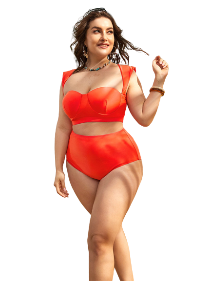 Plus Cut-out Underwire Bikini Swimsuit With Beach Skirt Orange – Plus Curvves
