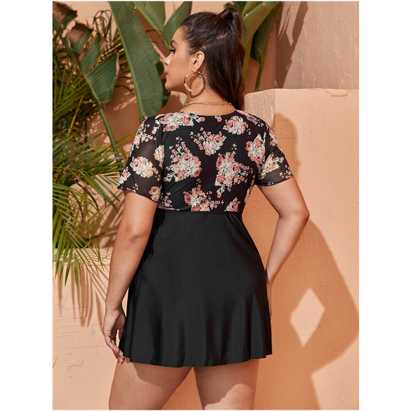 Plus Floral Flounce Bikini Swimsuit Black – Plus Curvves