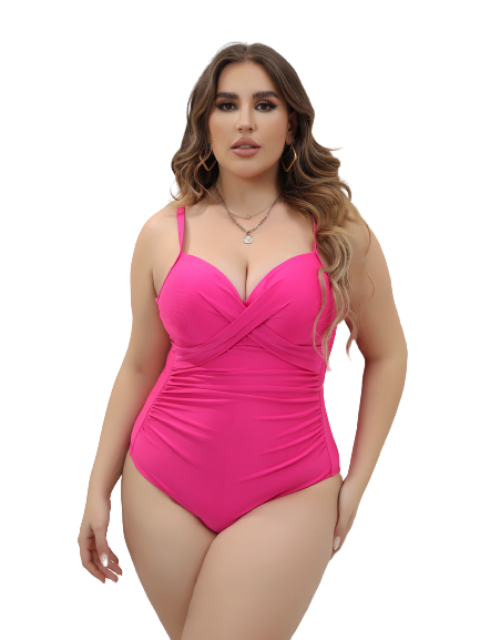 Plus Ruched Wrap Cross Push Up One Piece Swimsuit Pink – Plus Curvves