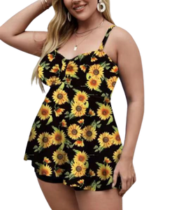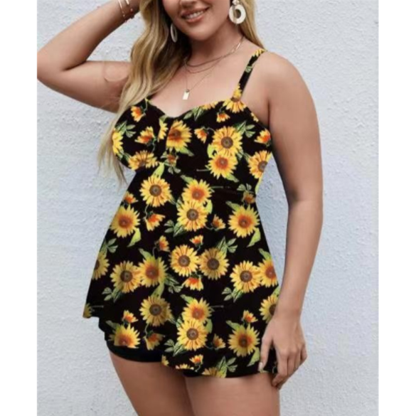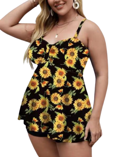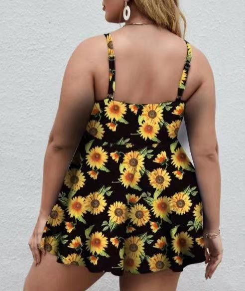 Plus Size Floral Print Swim Dress With Shorts Yellow Print