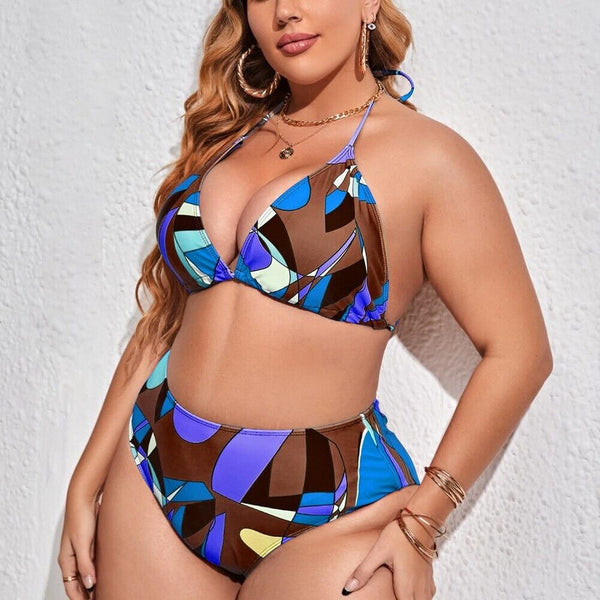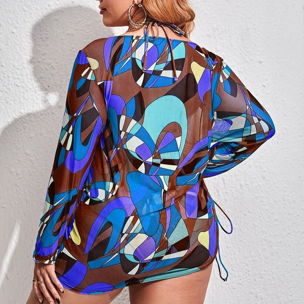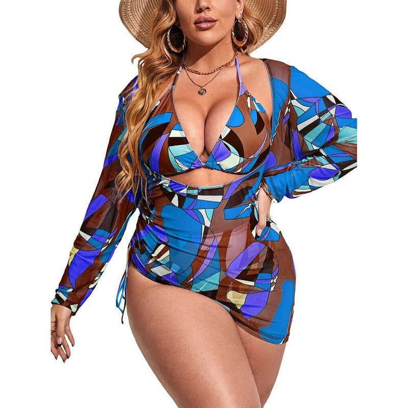 3pack Plus Print Bikini Swimsuit & Cover Up Blue – Plus Curvves