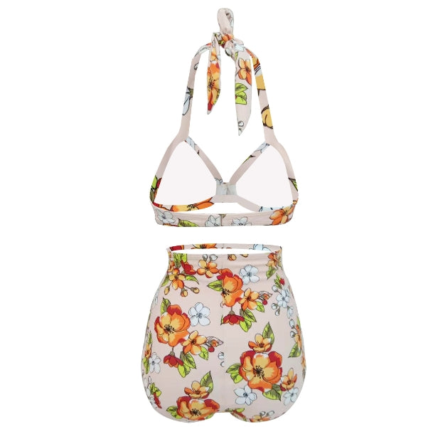 Plus Size Floral Hollow Out High Waist Bikini Set multicolour