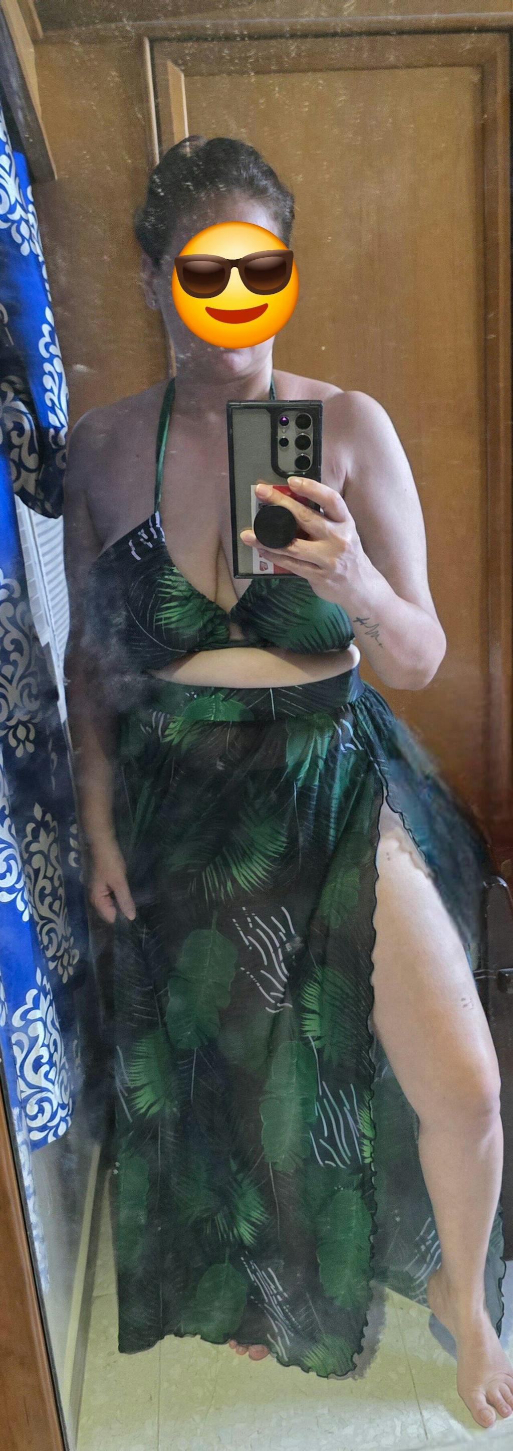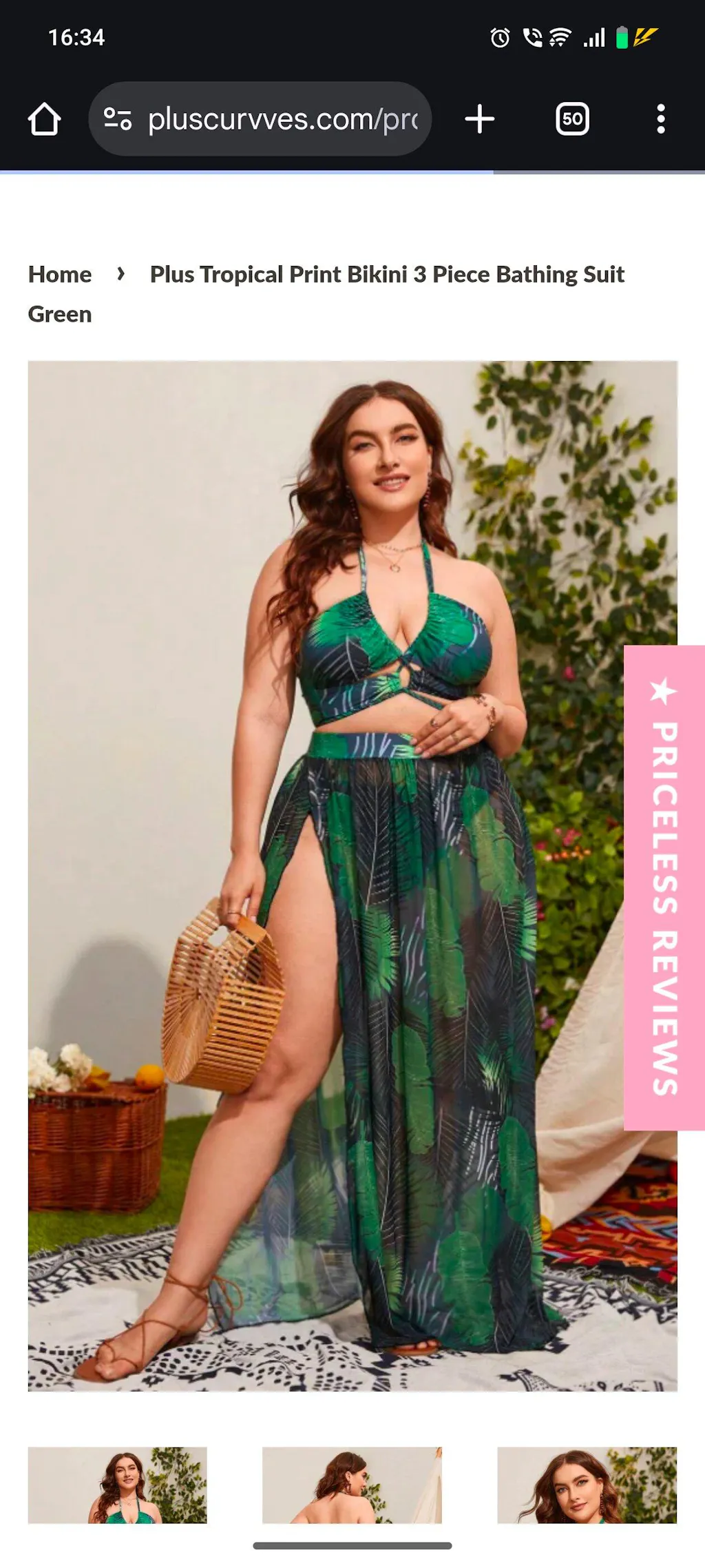 Product Description: Neckline: Halter Pattern Type: Tropical Length: Long Bottom Type: High Waist Bra Type: Wireless Bra Number of Pieces: 3 Piece Set Fabric: Medium Stretch Bikini Tops Material: Fabric Bikini Tops Composition: 82% Polyester, 18% Elastane Care Instructions: Machine wash, do not dry clean, wash with the soft detergent Bikini Tops Body: Lined Chest pad: Removable Padding