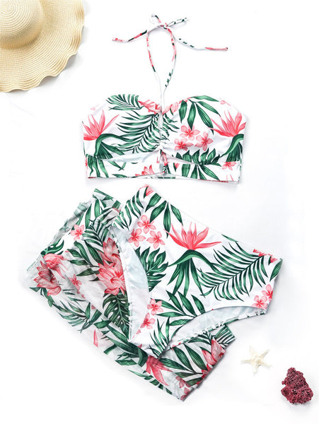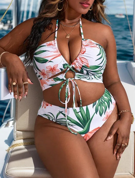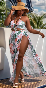 Plus Tropical Print Bikini 3 Piece Bathing Suit White