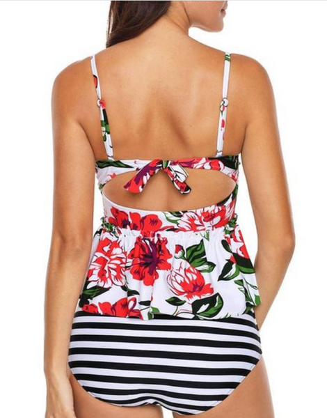 Product Description:Feminine and flirty, we love this flounce tankini combines glamour with comfort. Sexy tankini top with adjustable shoulder straps and underwire cups provide ample support. The peplum ruffle gives you space to breathe freely. The eye-catching print offers a solid color background with a bright floral pattern. Matching with a high-waisted swim bottoms for a chic and flattering look.