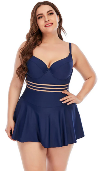 Plus Size Navy Blue Cut Out Underwire Bikini Swimsuit