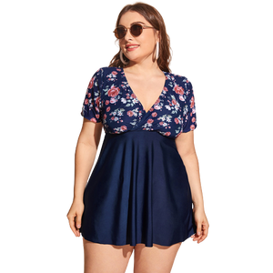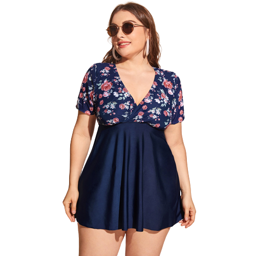 Plus Floral Flounce Bikini Swimsuit Blue – Plus Curvves