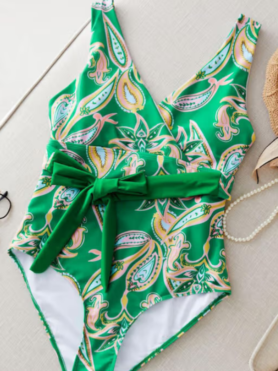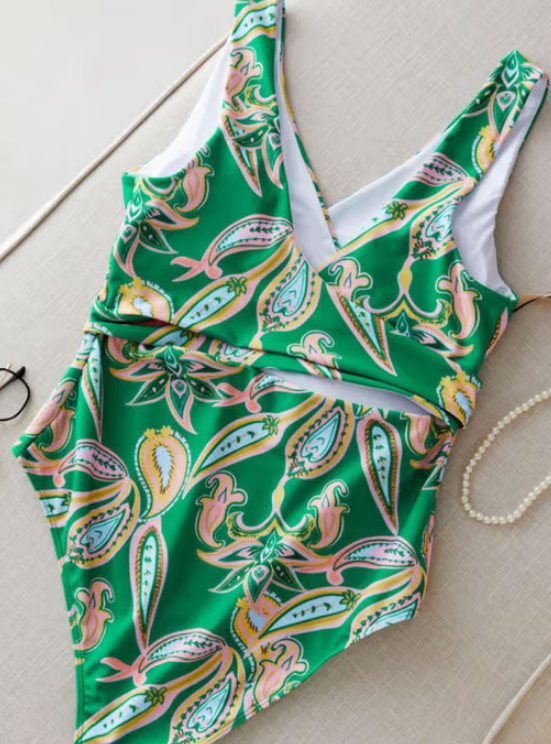 Plus size Abstract Print Monokini Green – Plus Curvves