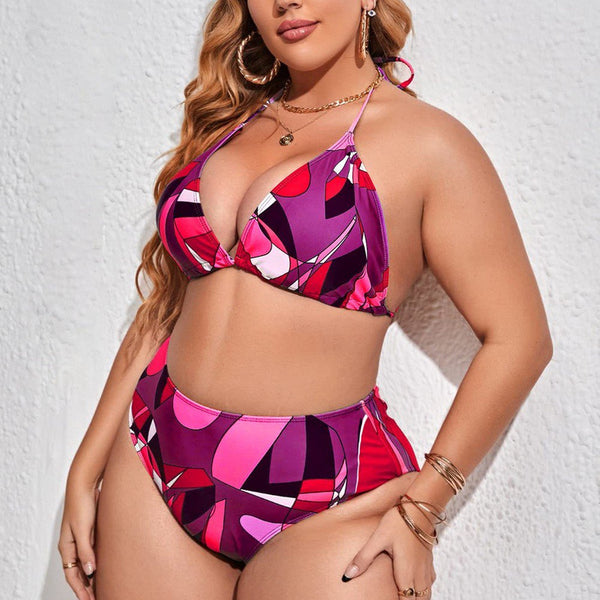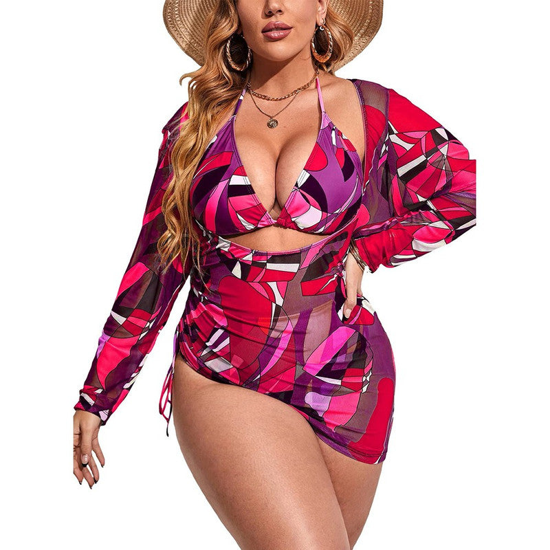 3pack Plus Print Bikini Swimsuit & Cover Up Maroon