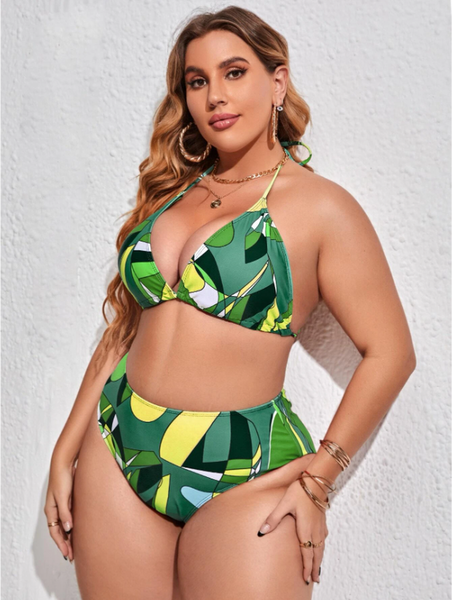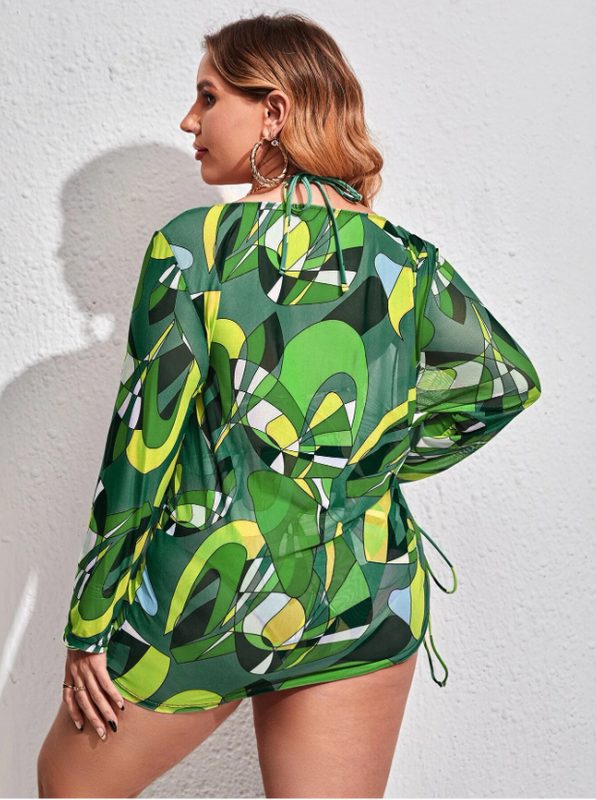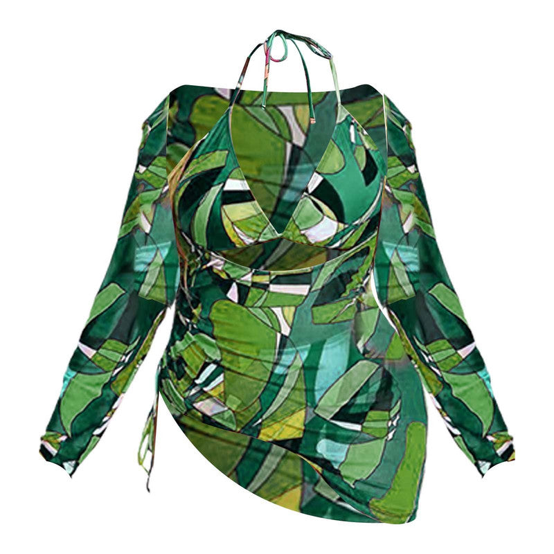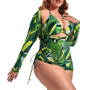 3pack Plus Print Bikini Swimsuit & Cover Up Green