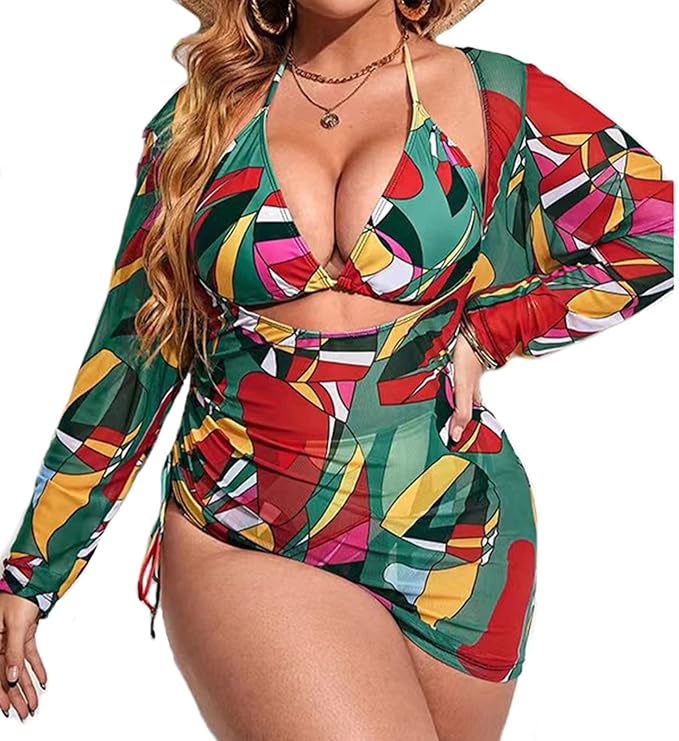 3pack Plus Print Bikini Swimsuit & Cover Up Multicolor
