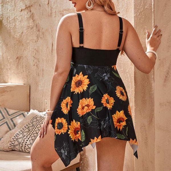 Product Description: Style: Boho Neckline: Spaghetti Strap Pattern Type: Floral Details: Asymmetrical Length: Long Bottom Type: High Waist Bra Type: Wireless Bra Fabric: High Stretch Bikini Bottoms & Bikini Tops Composition: 82% Polyester, 18% Elastane Care Instructions: Machine wash, do not dry clean Chest pad: Removable Padding