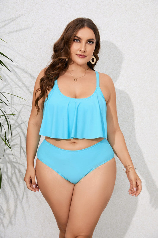 Plus Hanky Hem High Waisted Bikini Swimsuit With Beach Skirt Multicolor