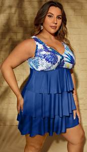 Plus Layered Ruffles Women Tankini Skirt with Bottoms Blue
