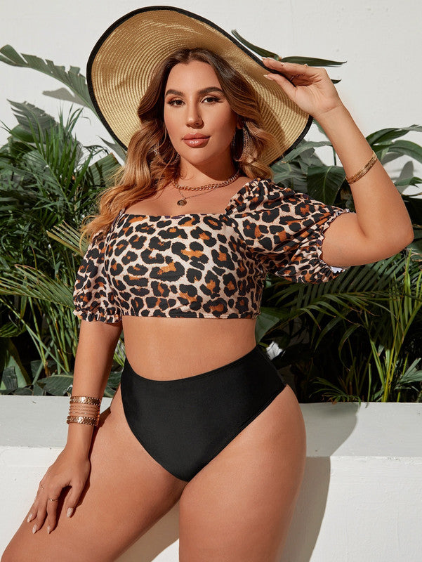 Product Description: Plus Size Animal Print Swimsuits Leopard