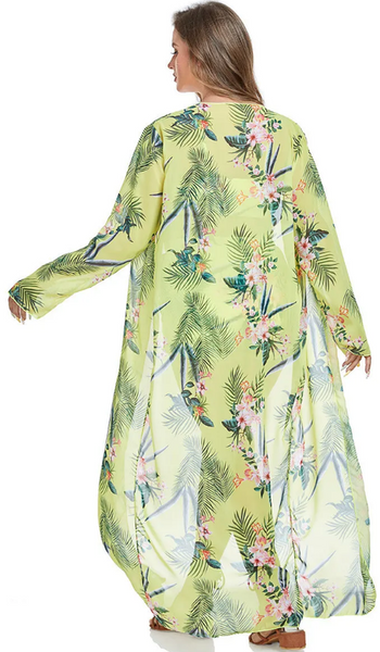 Plus Size Bikini Print Beach Sun Protection Swimwear Three-Piece Light Green