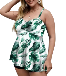 Plus Size Floral Print Swim Dress With Shorts White Print – Plus Curvves