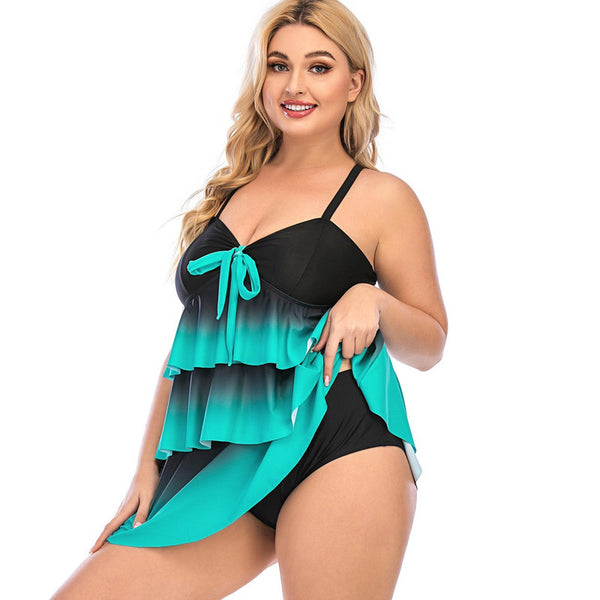 Plus Size Ruffle Two Piece Swimsuit Multicolor