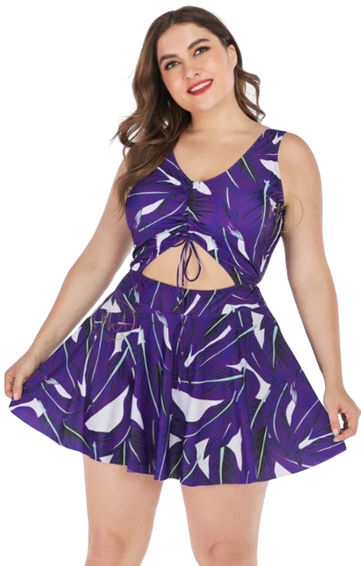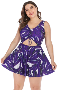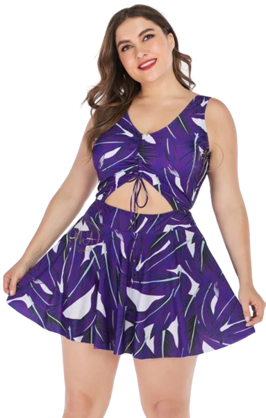 Plus Size Swimdress Halter One Pieces Tankini Indigo