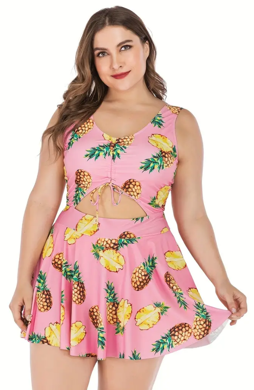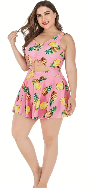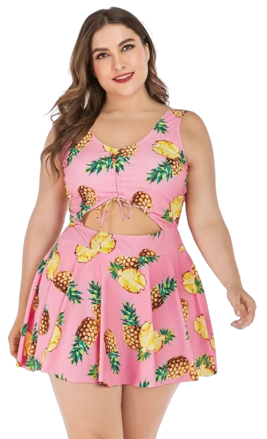 Plus Size Swimdress Pineapples Halter One Pieces Tankini Light Pink