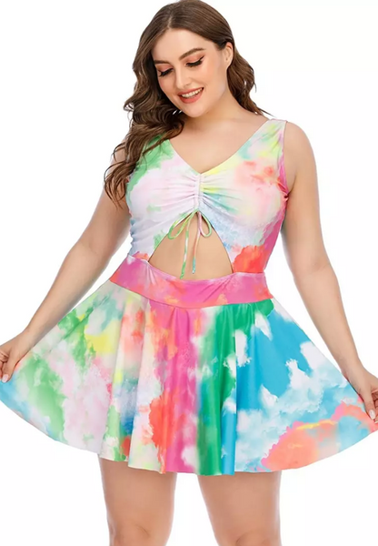 Plus Size Swimdress Solid Halter One Pieces Tankini Multicolor