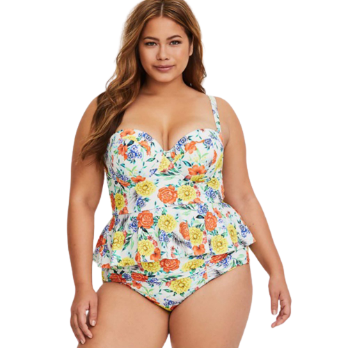Plus size Torrid Underwire Peplum Yellow Tankini Swimsuit