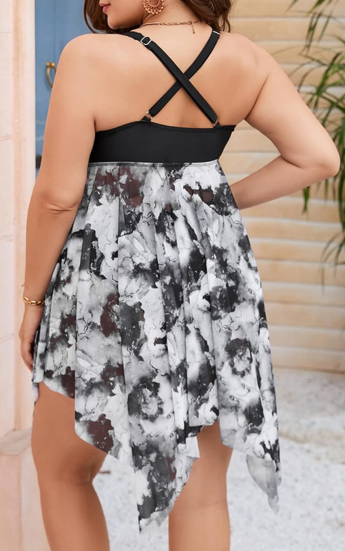 Product Description: Style: Boho Neckline: V neck Pattern Type: Tie Dye, Textured Pattern Details: Asymmetrical, Criss Cross, Cut Out, Drawstring Length: Long Bottom Type: Skirt Bra Type: Wireless Bra Number of Pieces: 2 Piece Set Fabric: High Stretch Bikini Tops Material: Knitted Fabric Bikini Tops Composition: 82% Polyester, 18% Elastane Care Instructions: Machine wash, do not dry clean Bikini Tops Body: Lined Chest pad: Removable Padding
