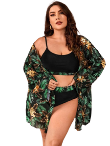 Plus Tropical Print Bikini Set 3 Piece Swimsuit Dark Green